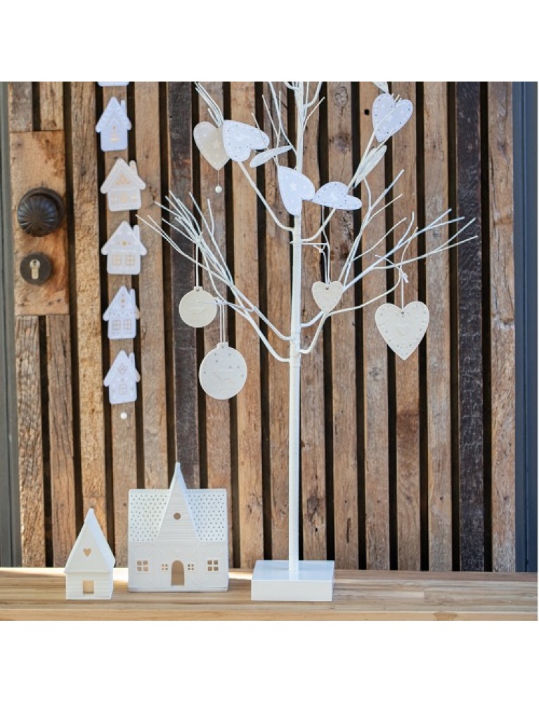 Guirlande en papier avec imprimé et marquage à chaud doré ou argenté et perle en porcelaine sur le bas.